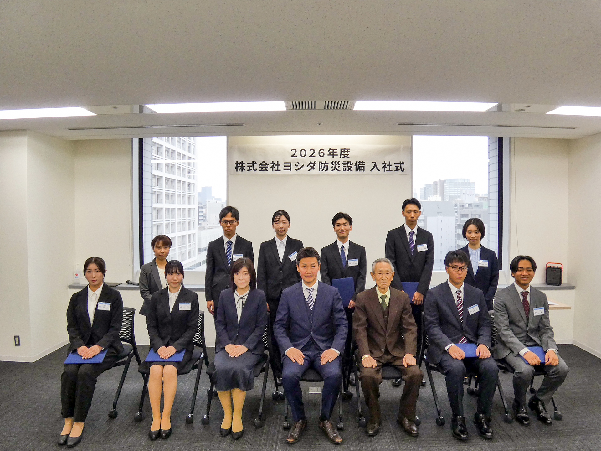 消防設備に留まらず、建築基準法に基づく点検や防火設備、さらには震災領域までを見据え、10年先に向けて共に成長していこうという熱いメッセージが新入社員へ送られました。